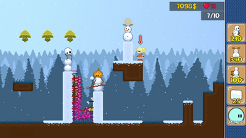 Chilly Towers is a one of a kind tower defense-platformer! in this charming winter themed game you can build a variety of snowmans to attack monsters invading your village! but unlike most TD games your character must build them directly! run , jump around and build blocks of snow to reach the most ideal places to build!